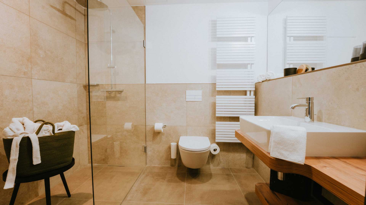 - großzügiges Badezimmer mit Badewanne, Dusche, WC, Doppelwaschbecken