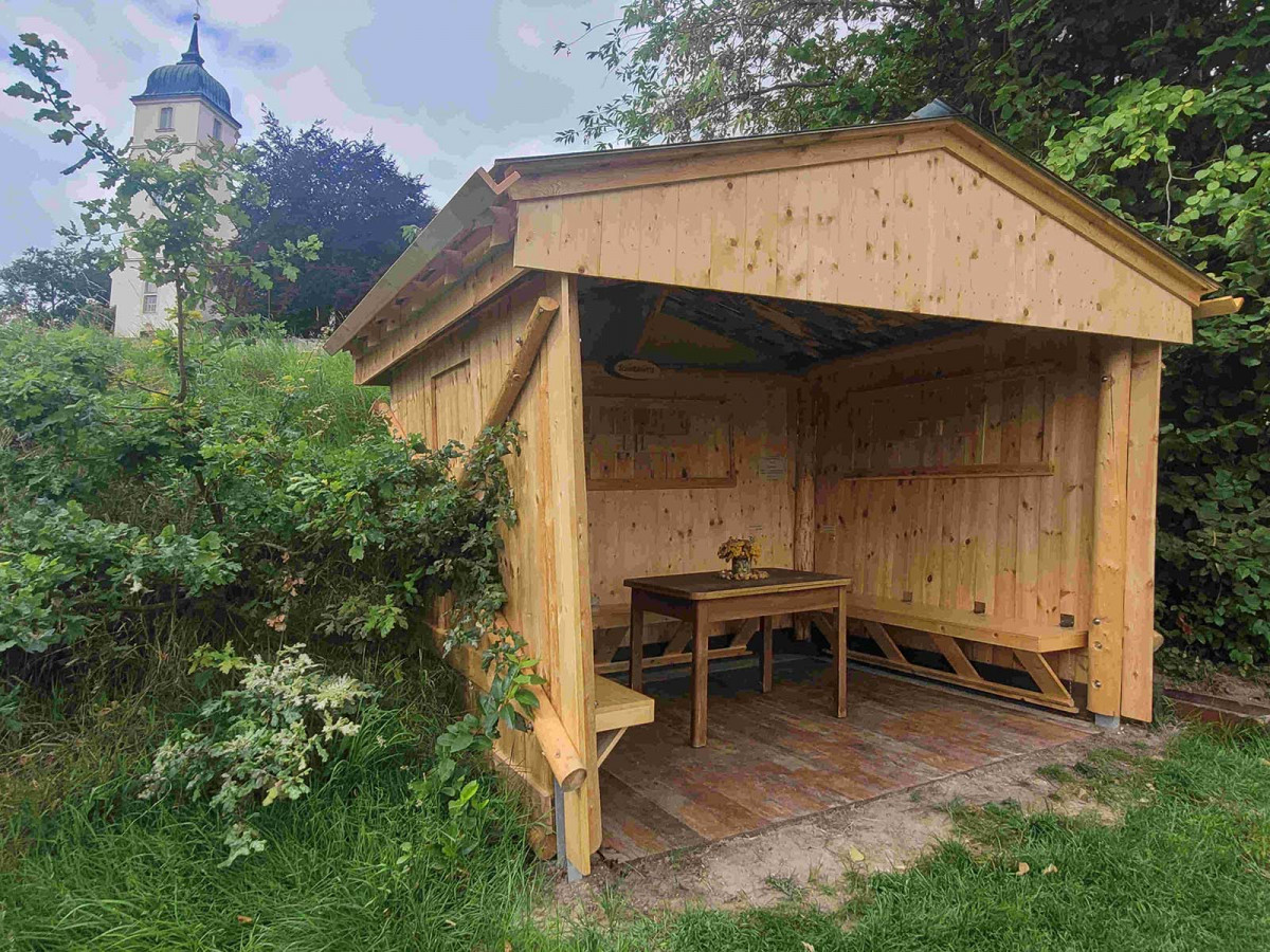 Die Schäferhütte wurde 2025 neu gebaut und steht unseren Gästen im Garten zur Verfügung.