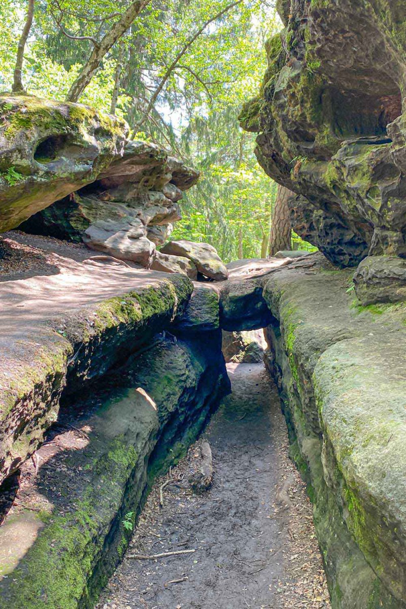 Eltern müssen keine Sorge haben, hier Ihre Kinder für immer zu verlieren, denn der Parkour ist mit "Eingang" und weiteren Stationsnummern gekennzeichnet. Die zahlreichen Klettermöglichkeiten und Felstunnel sind ein relativ ungefährliches Naturerlebnis direkt am Felsen.