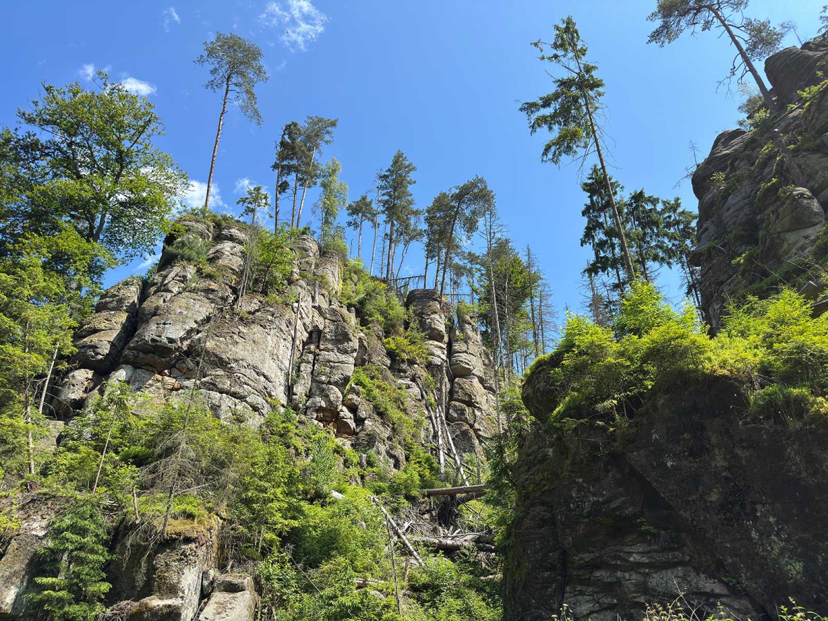 Bei trockenem Wetter kann man an den Kletterfelsen Wildensteinwand, Ochsenkopf und Zyklopenmauer Bergsteigern bei ihren abenteuerlichen Aufstiegen zuschauen.