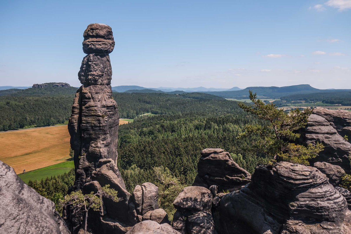 Der markanteste Punkt auf dem Pfaffenstein ist die bekannte Felsnadel "Barbarine". Sie ist das Wahrzeichen für das Landschaftsschutzgebiet Elbsandsteingebirge.